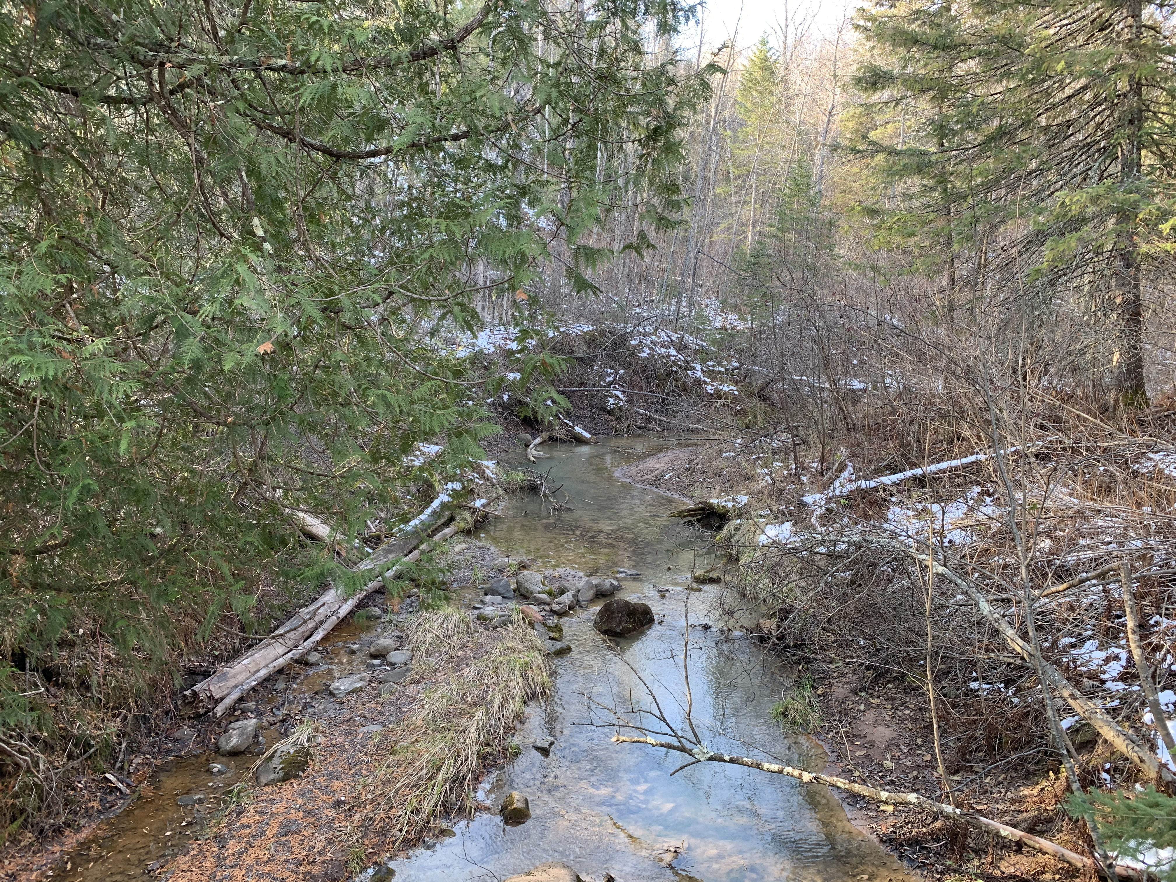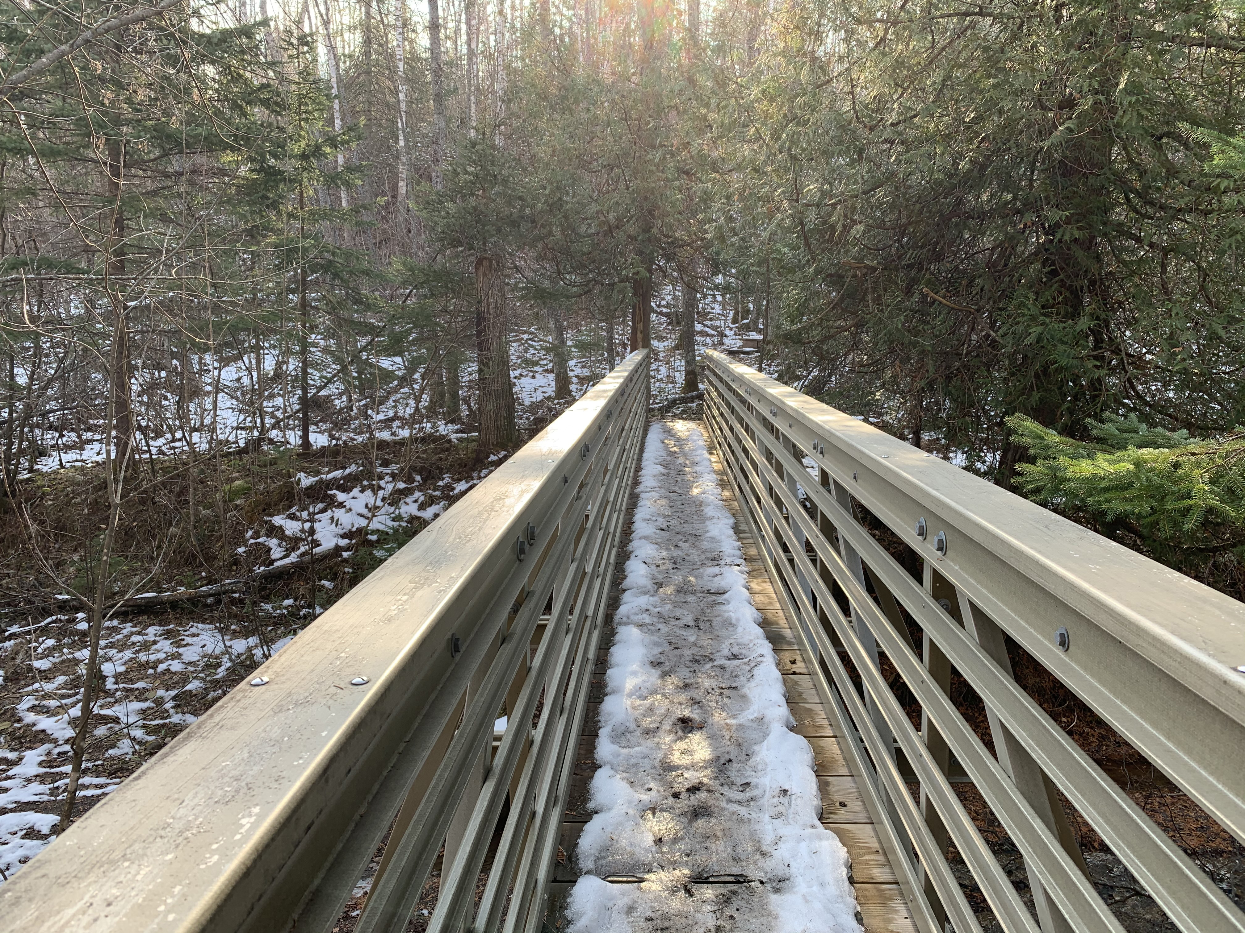 Short hilly section that runs from the Wild Valley Road trailhead to the Minnesota/Wisconsin border. The border marks the southern terminus of the Superior Hiking Trail. This is an out and back hike. Note that you can continue hiking into Wisconsin along the North Country National Scenic Trail. The connection between the Superior Hiking Trail and the North Country National Scenic Trail (NCST) was recently created (as of about 2019) allowing for continuation into Wisconsin.